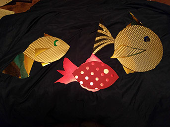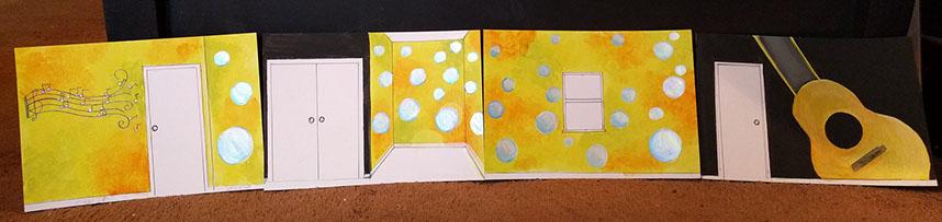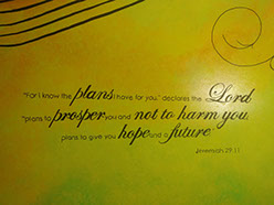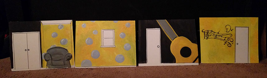 Day Five: The guitar gets a second coat. The South wall gets music. Amazing grace is a song Mary sings to Elijah often, along with a meaningful Bible verse. The bubble wall near completion for Elijah's life size fish tank.