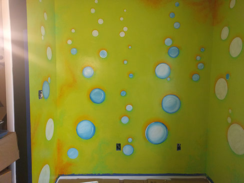Day Four: Start blending on the south wall, getting it ready to for the music notes. The bubbles have been shaded for depth.